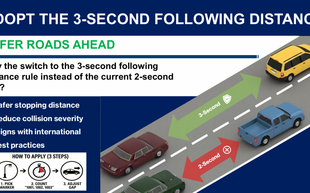 Starting from 2 January 2026, the following distance between you and the car in front will be updated to ‘3 seconds’ in good weather and ‘6 seconds’ in wet weather. Please note that for the Basic, Final and Riding e-Trial, Internal Evaluation (IE) and Computerised Theory Test, learners should select the above answers.