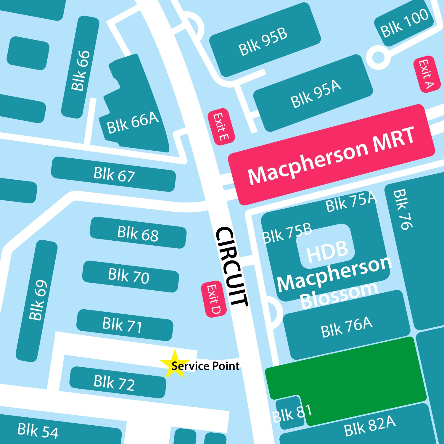 * Service points: Kovan, Serangoon, Hougang, Buangkok, Punggol & Macpherson
